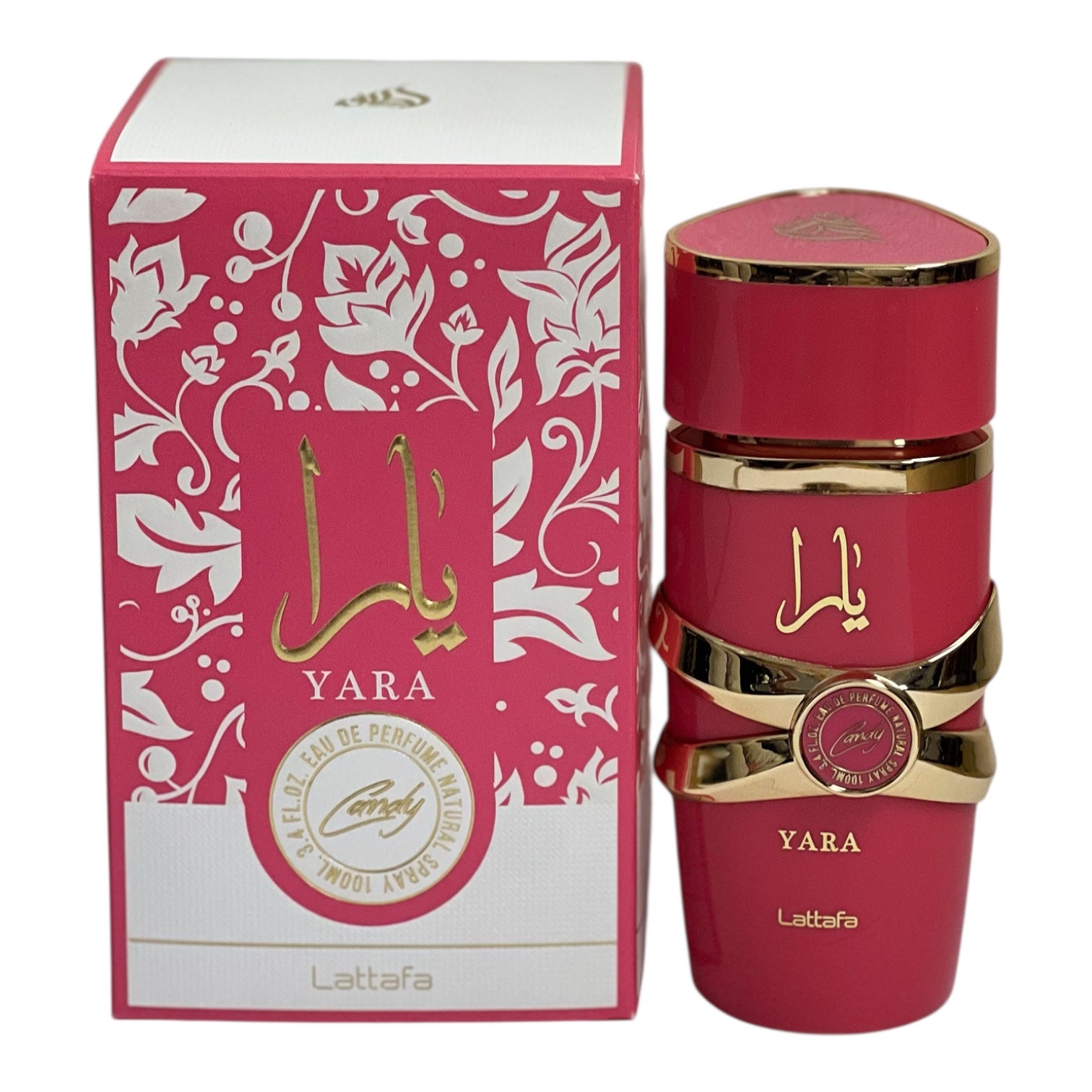 Yara Candy est une fragrance gourmande et pétillante qui marie des notes fruitées, florales et sucrées. L'ouverture fraîche de mandarine verte et de cassis cède la place à un cœur délicieusement sucré de bonbons à la fraise et de gardénia. Le fond révèle une douceur enveloppante de vanille, de musc, d'ambre et de bois de santal, offrant un sillage chaleureux et réconfortant. Une composition idéale pour celles qui recherchent une signature olfactive sucrée et féminine.