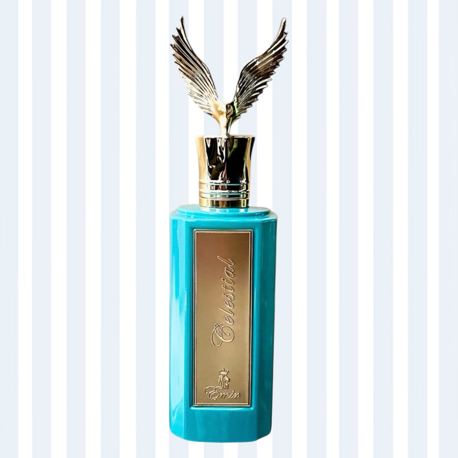 Celestial allie fraîcheur minérale et chaleur cuirée. Mandarine, violette et immortelle s’unissent au daim, safran et bois d’Akigala pour un sillage sensuel, lumineux et sophistiqué.