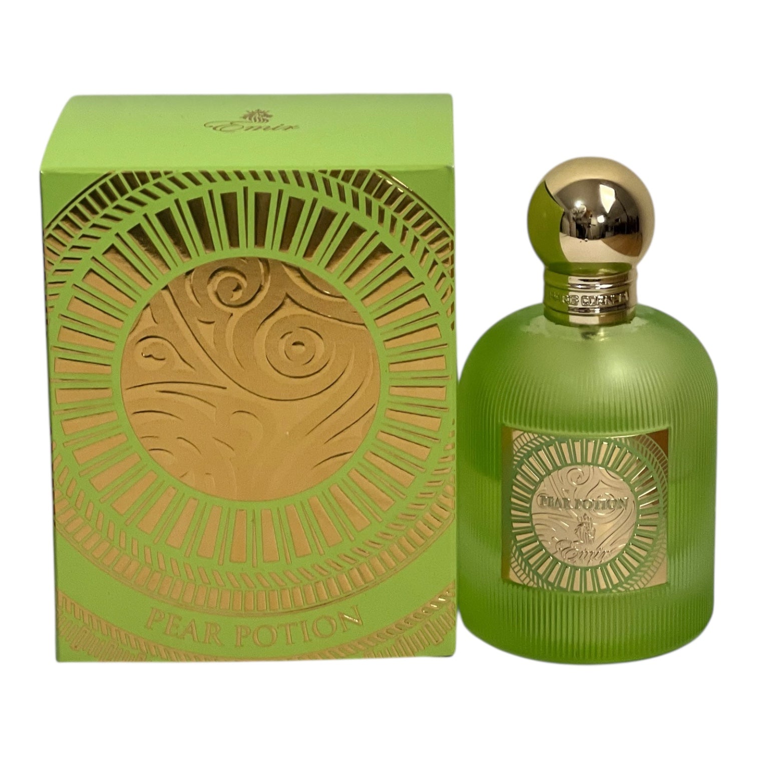 Pear Potion d'Emir (Paris Corner) est une fragrance unisexe gourmande et fruitée, évoquant la douceur d'un verger ensoleillé. L'ouverture mêle la fraîcheur croquante de la pomme à la douceur juteuse de la poire, offrant une sensation vivifiante. Le cœur dévoile un accord floral de jasmin enrichi par la gourmandise du caramel, apportant une touche sucrée et enveloppante. Le fond associe la framboise acidulée au musc doux, créant un sillage tendre et séduisant. Une composition idéale pour ceux qui recherchent une signature olfactive fruitée et élégante.